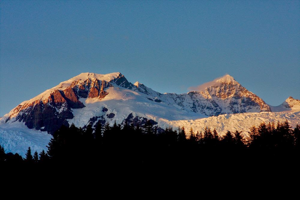 The Fairweather range in Southeast Alaska must surely be among the most spectacular mountain ranges in the world. Mt. Fairweather rises from the Gulf of Alaska to over 4000 m over a distance of only about 20 km and then it drops right back to sea level on its east side towards Glacier Bay (Google maps). The area is heavily glaciated with big glaciers dropping from the peaks to the ocean. The spectacular topography is a result of the very active tectonics of the area with the giant strike/slip Fairweather Fault cutting right along the coast.